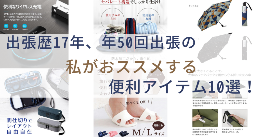 出張歴17年の私がおススメする便利アイテムをご紹介します。 出張時の便利アイテムも重要ですが、年末年始や長期連休時に実家に帰省する際も重宝します。 出張にもって... -